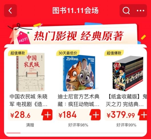 近期多部影视动漫作品热播,而阅读原著、收藏周边等,正成为观众延伸观剧体验、构建完整故事认知的重要方式。京东图书11.11汇集《疯狂动物城》《鬼灭之刃》《唐朝诡事录》《造城者》等众多热门影视IP,涵盖典藏套装、原著、周边等品类,推出价格直降、近期最低价等福利,带读者深入幕后、走进剧情,感受原汁原味的故事魅力。现在打开京东APP,搜索“图书11.11”,轻松选购心仪作品,尽享阅读延伸的乐趣。