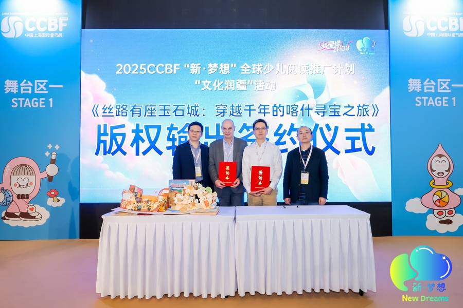 全国首本喀什主题立体书《丝路有座玉石城——穿越千年的喀什寻宝之旅》则体现了一本书制作工艺的“顶配”——“一”字展开为长达5.2米的震撼长卷,旋转拼合为约2平方米的立体全景……“新·梦想”全球少儿阅读推广计划“文化润疆”活动立体书,完成中法版权输出签约,也标志着阅读推广成果通过上海童书展平台走向国际。