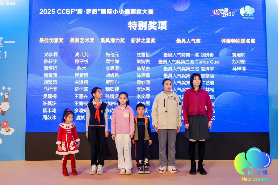 站在“新·梦想”国际小小插画家大赛获奖作品展示墙前,10岁女孩高芃芃难掩激动,她创作的《鱼的新生》获“最美艺术奖”,这幅画还被制成冰箱贴。“画画的时候,能把奇思妙想涂抹在画纸上,有种宁静的幸福感。在童书展还能看到许多风格的绘本,十分养眼!”