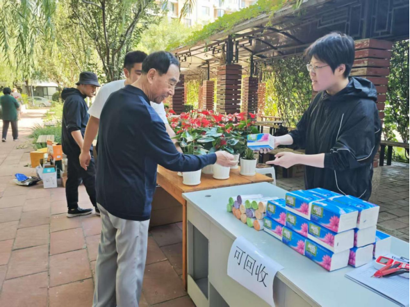 “我攒了一个月的快递纸箱和饮料瓶,今天换到了2盆绿萝和3包抽纸!”家住3号楼的李阿姨高兴地说,“这些东西放在家里占地方,扔了可惜,现在既能换实用物品,又能为环保出力,特别有意义。”65岁的王大爷用小推车运来了积攒半年的旧报纸和易拉罐,他说:“我年纪大了,出门买花不方便,用废旧物品换一盆多肉,正好可以装饰阳台。”
